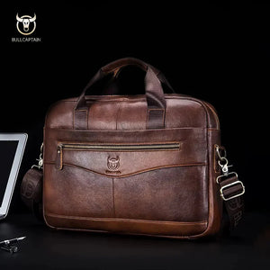 - Design executivo em couro legítimo, adequado para uso profissional e casual