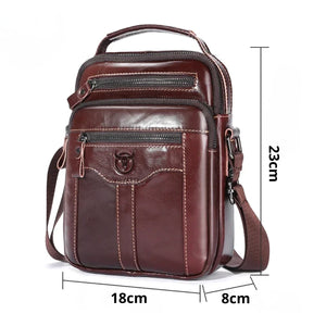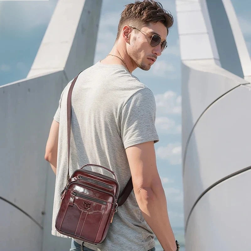 Confeccionada em couro 100% selecionado, ela apresenta um acabamento polido que transmite sofisticação em ambientes de negócios ou viagens. Sua versatilidade é ampliada pela alça de mão superior reforçada, que permite carregá-la como uma maleta compacta, além da opção tradicional de uso transversal, adaptando-se perfeitamente à sua rotina.