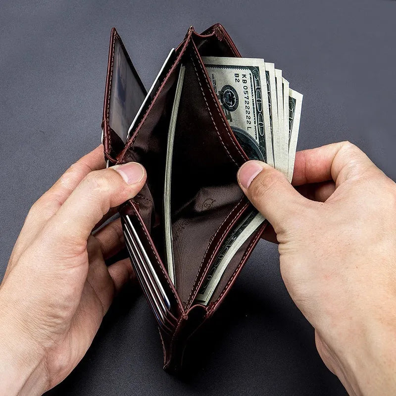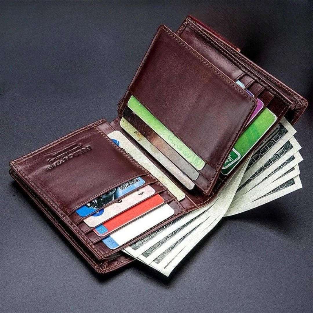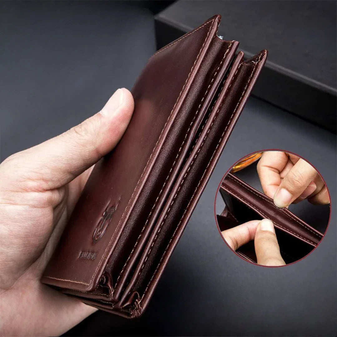 A Monarch redefine o padrão com seu formato vertical imponente. Projetada para acomodar documentos e cartões sem criar volume desnecessário, ela mantém a silhueta alinhada no bolso, tudo isso confeccionado em couro 100% selecionado de toque luxuoso e alta durabilidade.